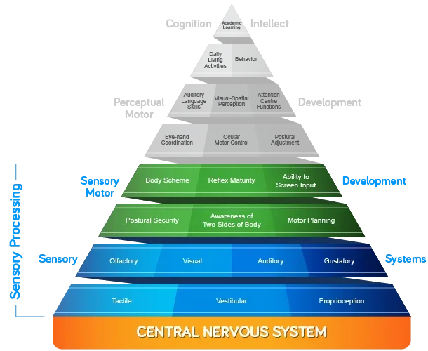 Good sensory processing is the basis for all other skills. The ability to take in information effectively through the body senses is vital to the ability to make sense of the physical and symbolic world. Occupational therapists help children who are over or under sensitive to stimuli around them. This helps them listen better, eat better, sleep better, and socialize better.